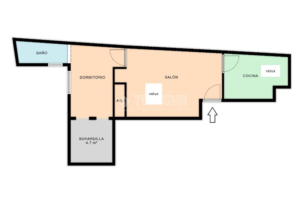 La vivienda tiene zonas abuhardilladas, pero permite estar de pie sin problemas por el apartamento en todas las estancias del piso.
